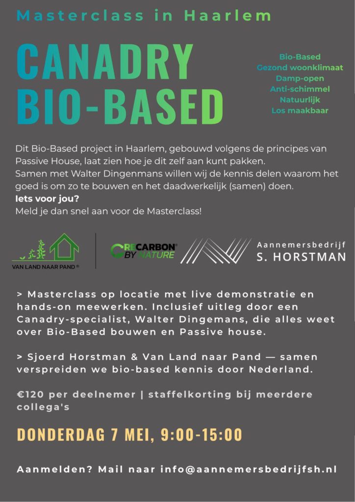 Wil je zelf ervaren hoe biobased bouwen in de praktijk werkt? Op donderdag 7 mei organiseren we samen met Sjoerd Horstman en Walther Dingemans een praktijkgerichte masterclass in Haarlem.